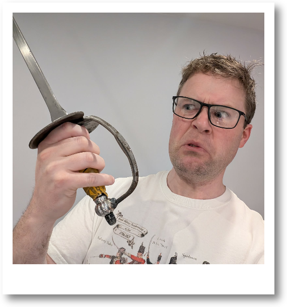 Colin is grumpy when he thinks about spadroons. He doesn’t like them. He’s wrong, but we’re going to humour him. He uses a weird curved thing he calls a sabre. Filthy. He’s going to be teaching his lesson “Carlsberg make shit beer, so if they did make swords, they’d probably make spadroons.” and will be convincing you that you should abandon your silly half-but-not-quite-broadsword-smallsword-thingy and use a proper sword to do a proper job.